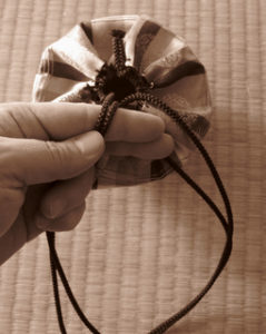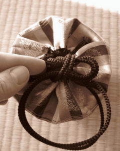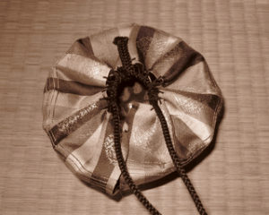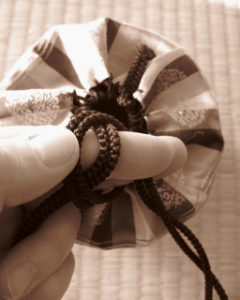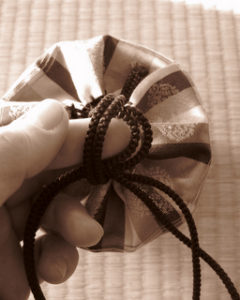 This is a description of how to make the knot on the Chawan–Shifuku. This knot is used for Daien no Shin while Chawan/Shifuku_Knot_1 is normally used for Daitenmoku and Yuki.
