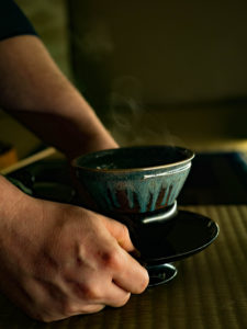 Temae – Shikaden – Daitenmoku Shikaden, TemaeThis temae is done with a karamono tenmoku chawan with a dai. The daitenmoku temae is one of the secret teachings of Urasenke. You need the Shikaden kyojo to study this temae.Tenmoku Chawan on a Dai